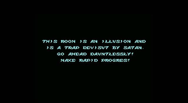 Speaking about starting over, after you spend hours and hours repeating and beating every level, you finally get to the top of the castle and defeat Satan in his house painter white overalls. However, be prepared to kick your TV screen in when you see this message (typo included):