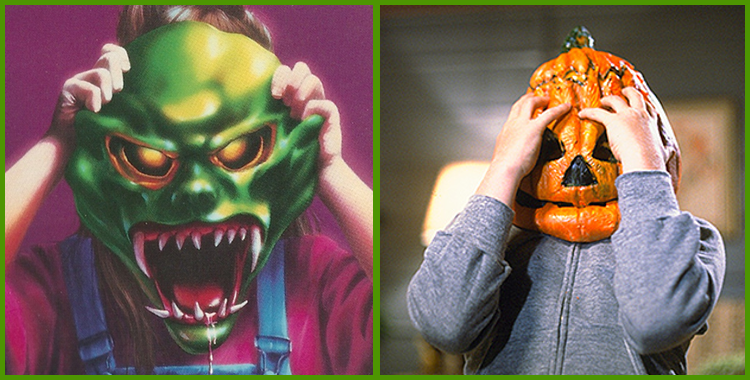 In “The Haunted Mask”, young Carly Beth Caldwell finds a creepy, lifelike mask in a mysterious costume shop. When she takes it home and puts it on, not only does it start to affect her behavior, but she soon finds she can’t take it off! In the Michael Myers-less Halloween III, deadly Halloween masks are being sold and circulated by Silver Shamrock Novelties, a mysterious company based in the fictional sleepy town of Santa Mira. Carly Beth gets off easy; she’s eventually able to remove that mask and learn a valuable life lesson in the process. The kids in Halloween III, however, aren’t so lucky: most of them have their heads nastily consumed by flesh-eating bugs. (Note: the scene I just described from Halloween III absolutely terrified me as a child. And understandably so.)